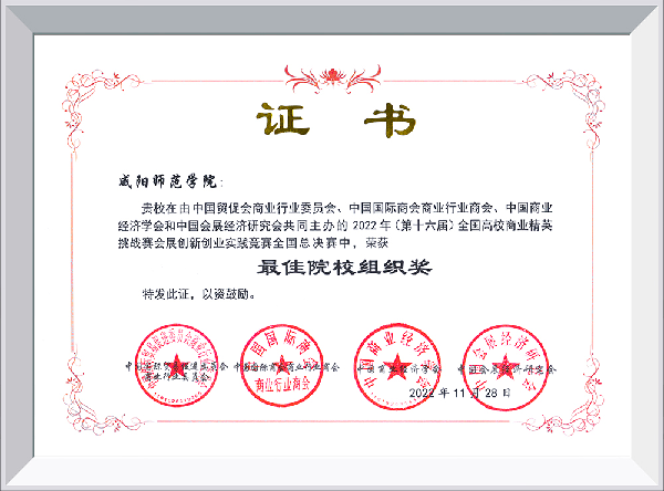 11月26日至28日, 2022年(第十六届)全国高校商业精英挑战赛会展创新创业实践竞赛全国总决赛在线上成功举行。公司在全校范围内组织遴选的项目在此比赛中斩获佳绩。该比赛是由中国国际贸易促进委员会商业行业委员会、中国国际商会商业行业商会、中国商业经济学会、中国会展经济研究会共同主办。