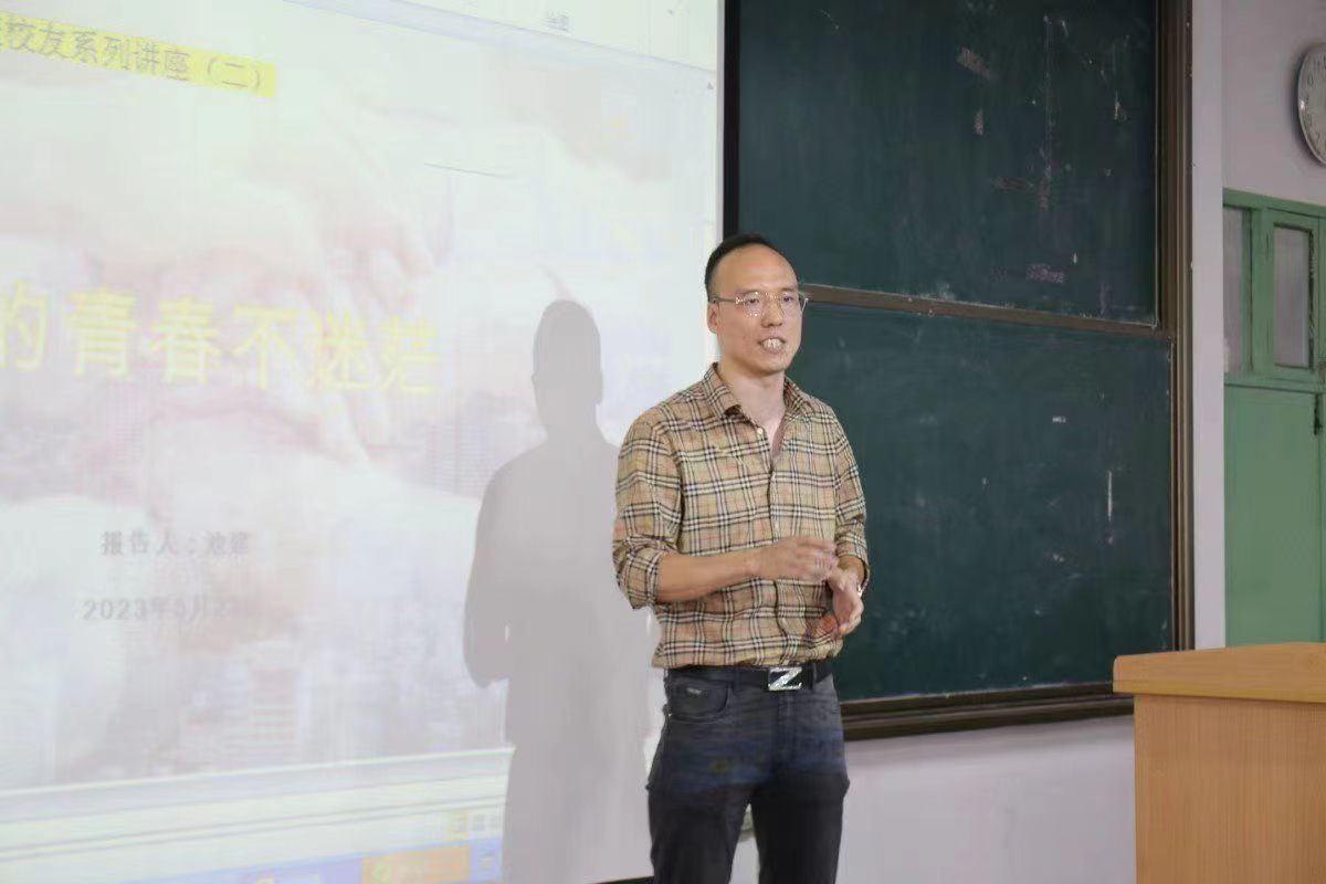 陕西登阁实业集团有限责任公司董事长池建从自己的求学之路讲起,强调同学们要扎实深入地了解自己的学术方向,对自己的专业要充满信心,提醒同学要明确自己的人生目标,要有勇气去做挑战性工作。