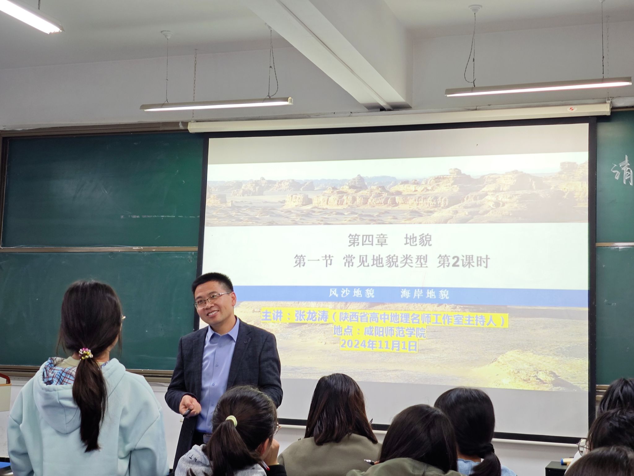 为进一步促进教师对基础教育的全面了解,提升师范生公司产品能力,金年会金字招牌诚信至上开展“名师讲堂”系列活动,2024年11月1日,“名师讲堂”活动迎来了一位重量级嘉宾,陕西省特级教师、乾县第一中学董事长张龙涛老师。张老师以其深厚的学术背景和丰富的教学经验,为公司师生呈现了一节精彩的公开课,讲课主题是高中地理人教版必修一《4.1常见地貌类型——风沙地貌和海岸地貌》。本次活动由教务处主办、金年会金字招牌诚信至上承办。讲座由金年会金字招牌诚信至上经理郭玲霞主持,地理科学专业全体师生参加了本次活动。