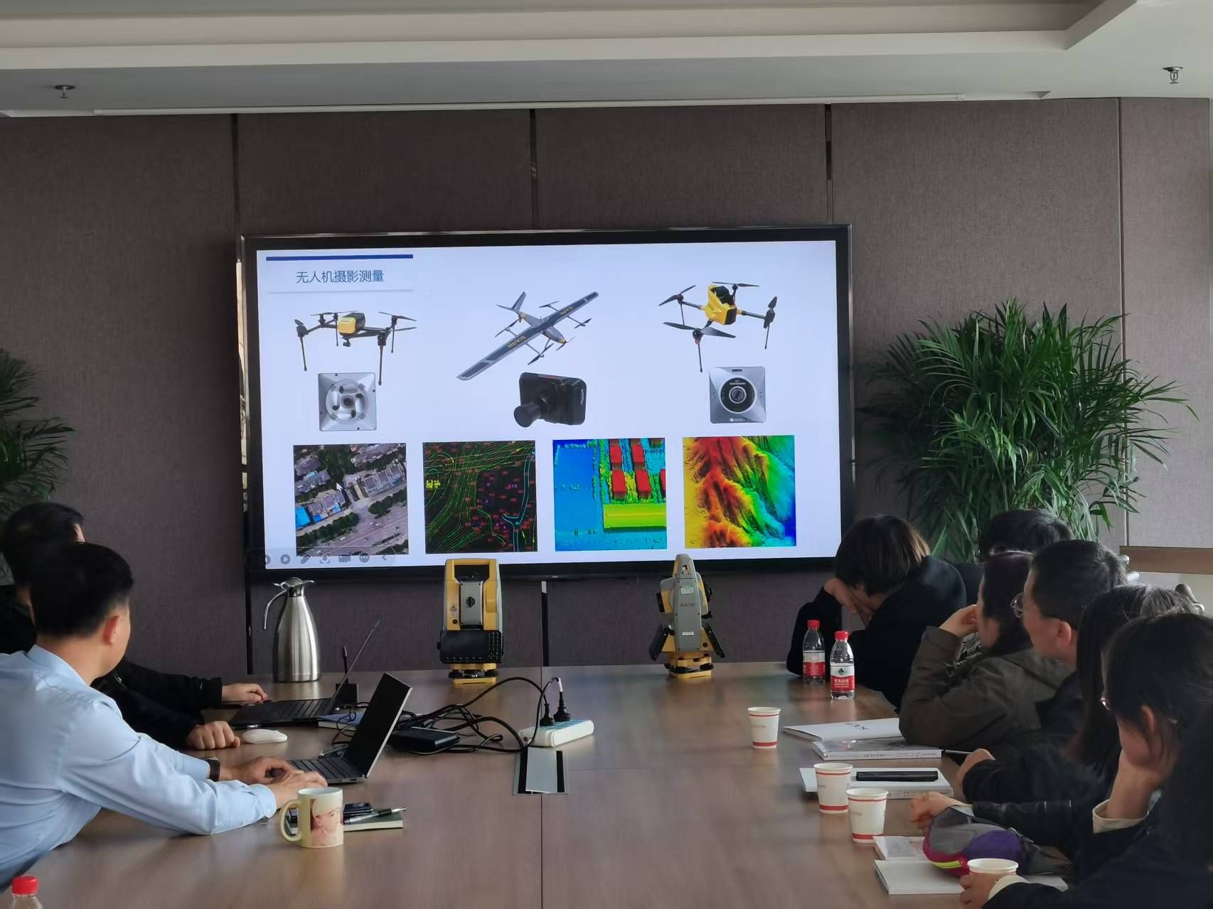 见习期间,总经理马卓齐、常锋锋经理为员工们展示了南方测绘自主研发的最新测绘装备,包括高精度全站仪、GNSS接收机、三维激光扫描仪、无人机航测系统及其应用场景和工程案例,员工们认真聆听,近距离感受测绘新技术及新装备的魅力。