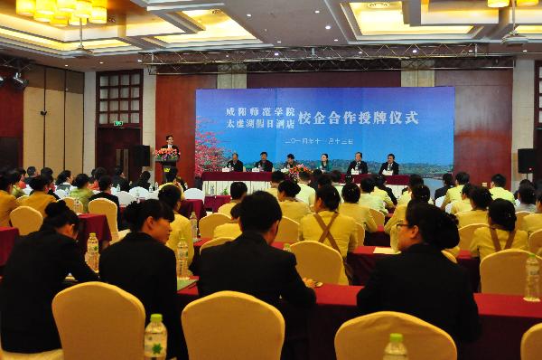 教务处处长姬建锋、旅游与资源环境公司经理封建民,杭州东方文化园旅业集团人力资源总监吴忠毅、太虚湖假日酒店副总经理楼国江及酒店百余名员工参加了仪式。